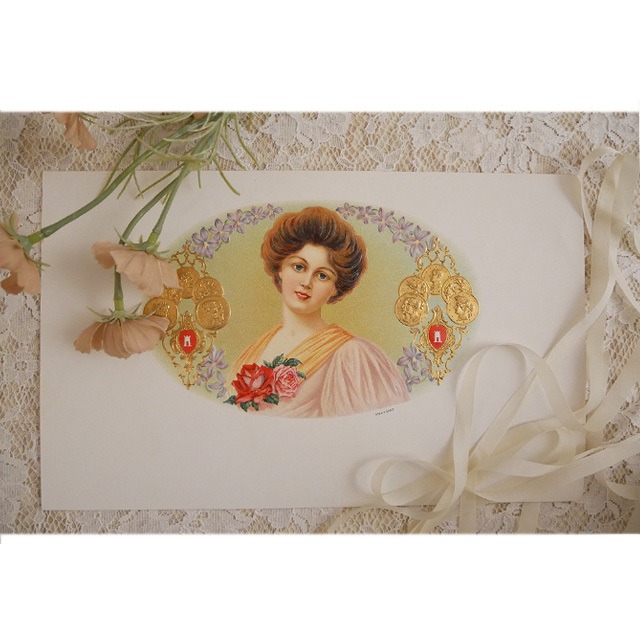 フランスの女性の美しいラベル いろんなお花に囲まれた女性がとても素敵です サイズ:12.5 x 10.5cm ※アンティーク、ブロカント、ヴィンテージの商品は経年によるキズ、汚れ、カケ、シミ、色あせ等があります。長い年月を経てきた味、風合いとご理解の上ご購入お願いいたします。