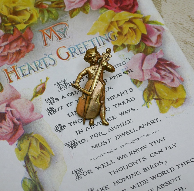 縦長デザインのフラワーブーケが素敵なピンバッジ