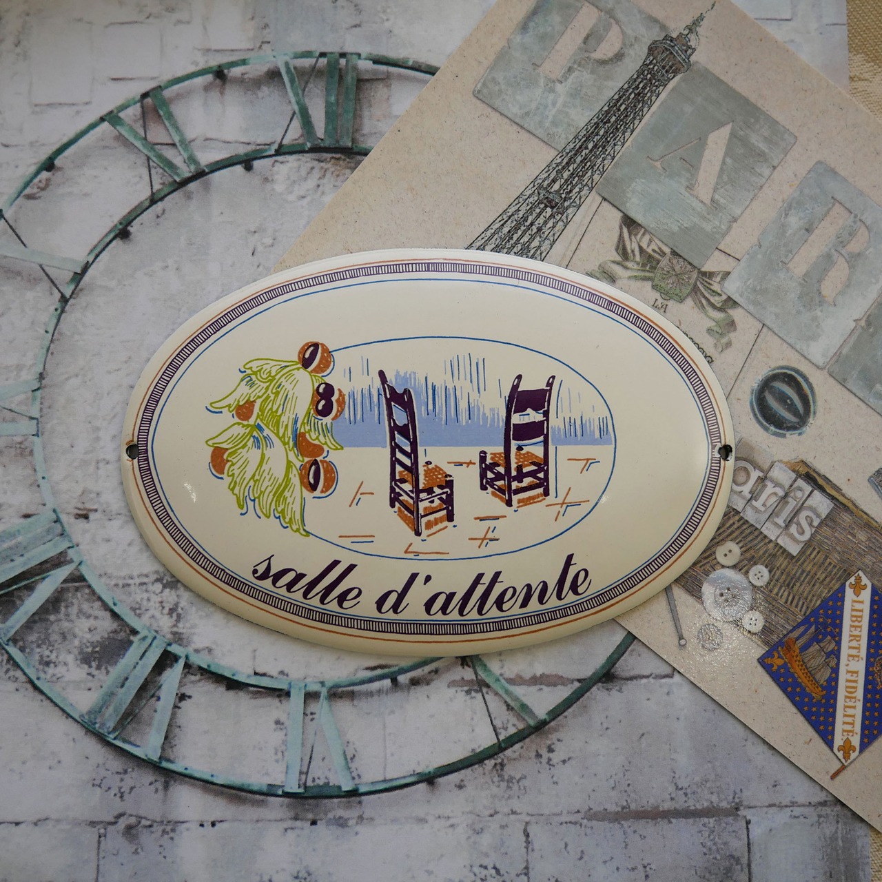 ホーロー製の楕円プレートに描かれた絵が素敵なドアプレートです