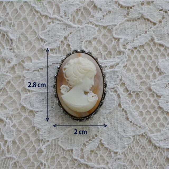 装飾のある台付き、女性の繊細な彫りがとても素敵なカボション サイズ: 28mm x 20mm