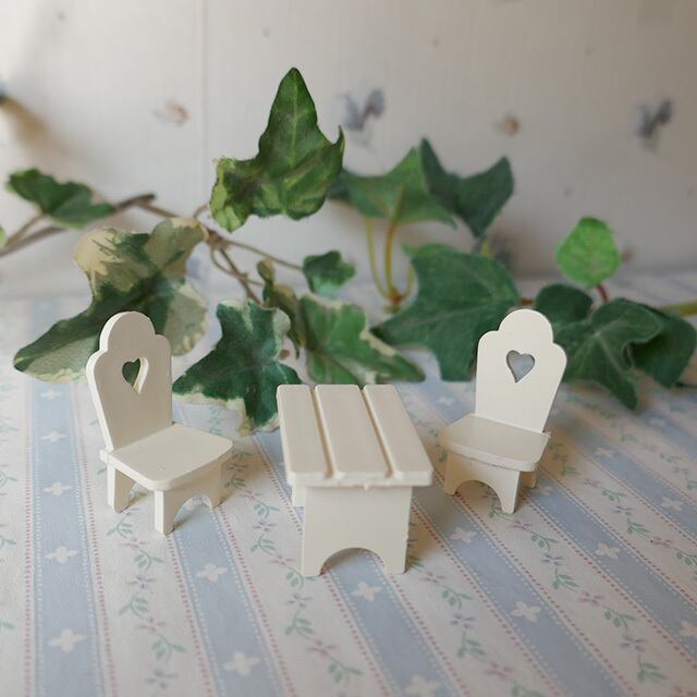 カラーはアイボリー、椅子の背のハートの切り抜きがとても可愛い!