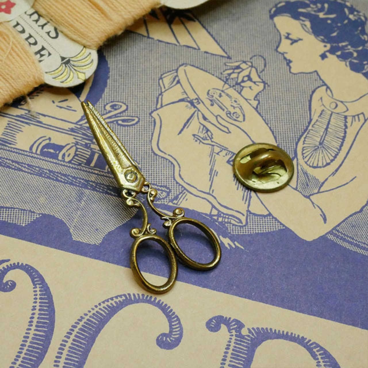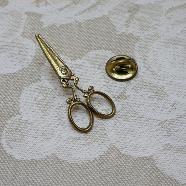 ハサミの形のピンバッジ クラシックなデザインが素敵です