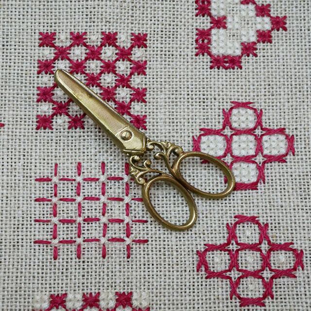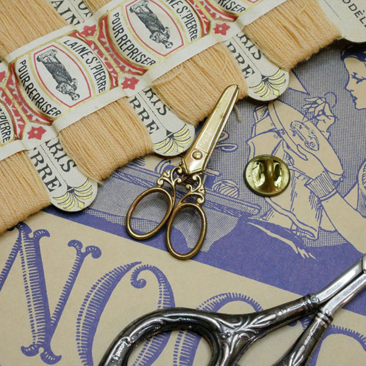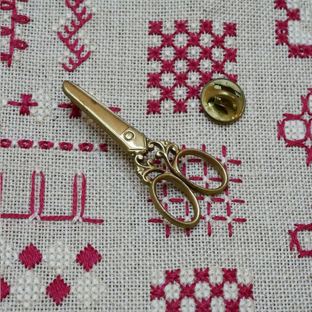 ハサミの形のピンバッジ クラシックなデザインが素敵です