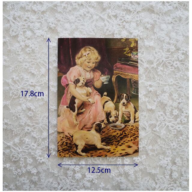 子犬とピンクのドレスの女の子がとても可愛い 額に入れて飾っても素敵ですね! カード、中はブランクです