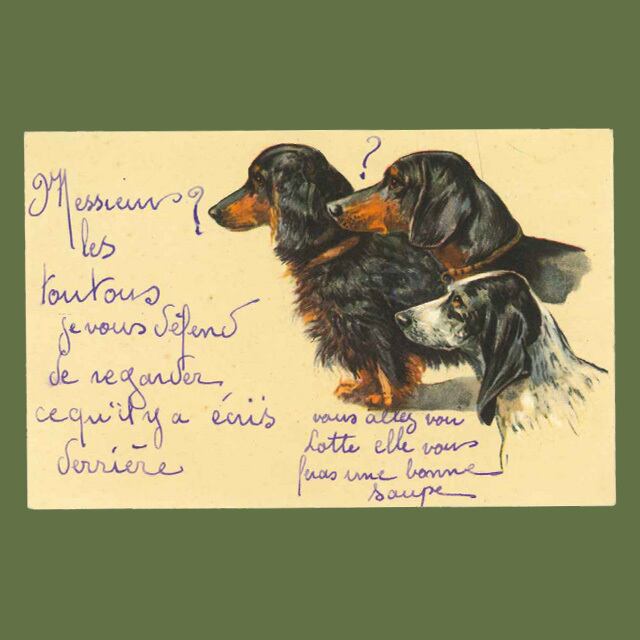 3種類の犬が描かれたとても雰囲気のあるカードです