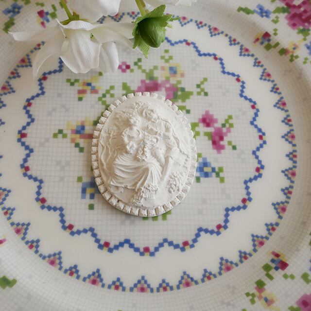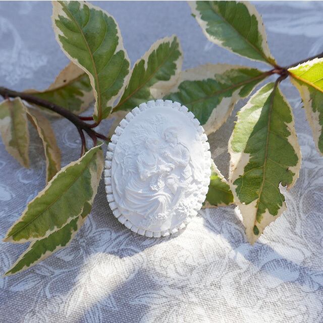 ガーデンのカップルがとても繊細に浮彫細工されているオーナメント
