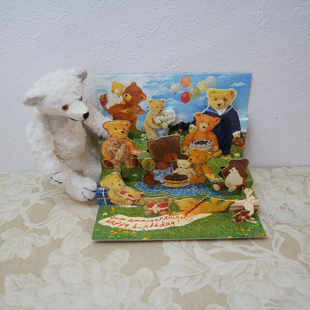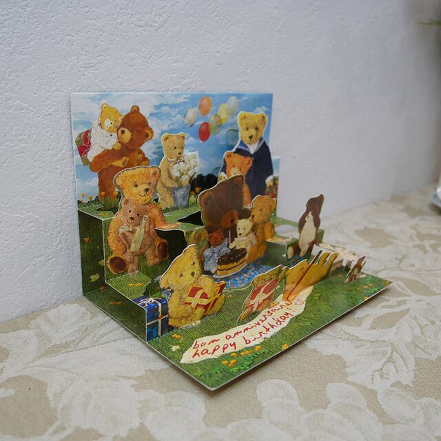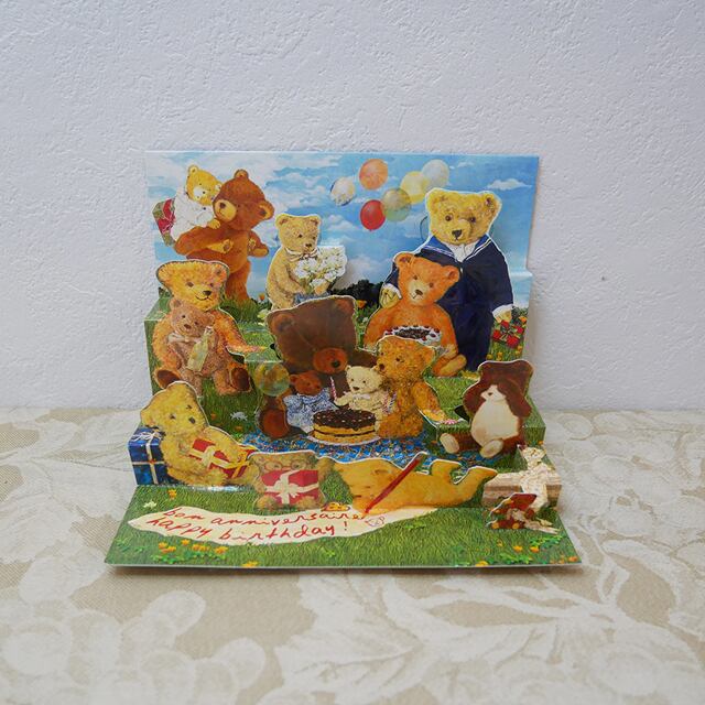 ビンテージ テディーベアのポップアップカード バースデー