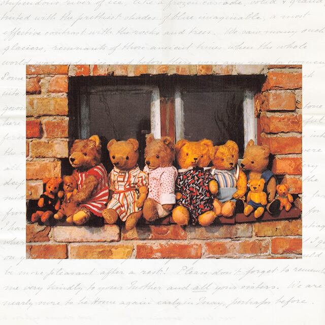 窓に並んだ可愛いテディベア