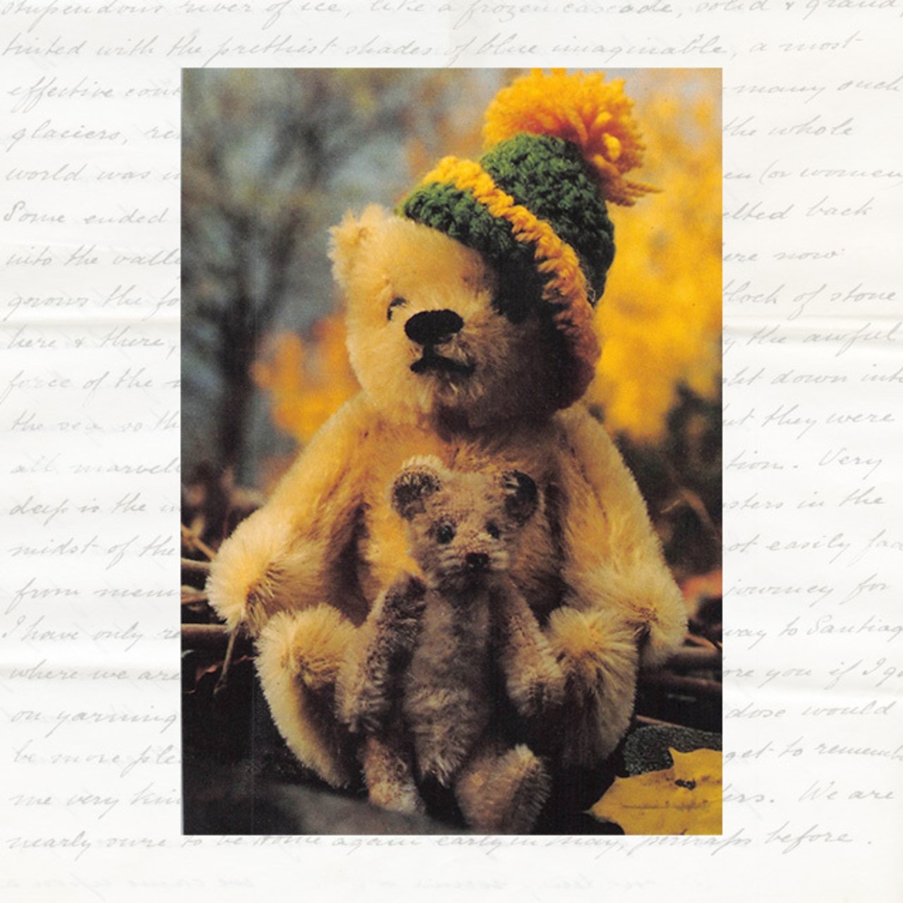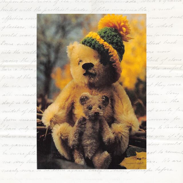 ニットの帽子が可愛いテディベア、小さなテディと一緒です