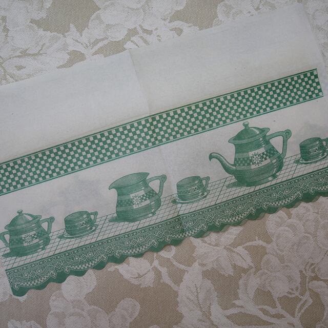 ポットの柄とレース模様、市松が素敵な紙のキッチンレース