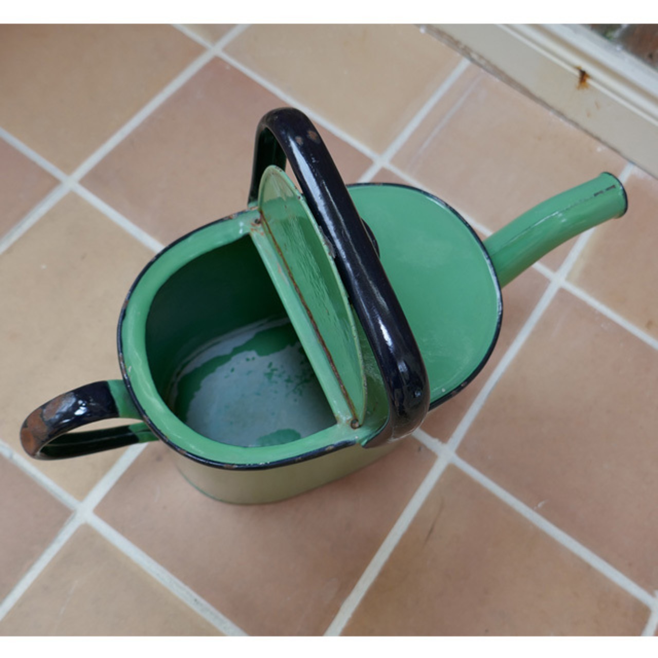 グリーンのベースにダークブルーの縁取りがアクセントのポット