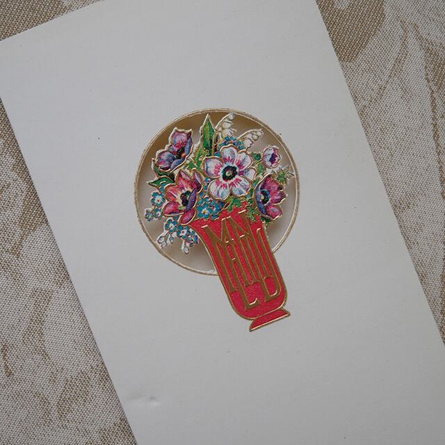 フランスの古い二つ折りメニューカード、 型抜きのお花が素敵なデザインです