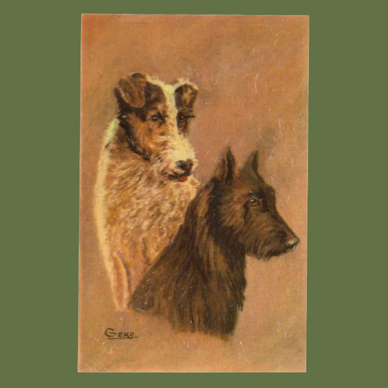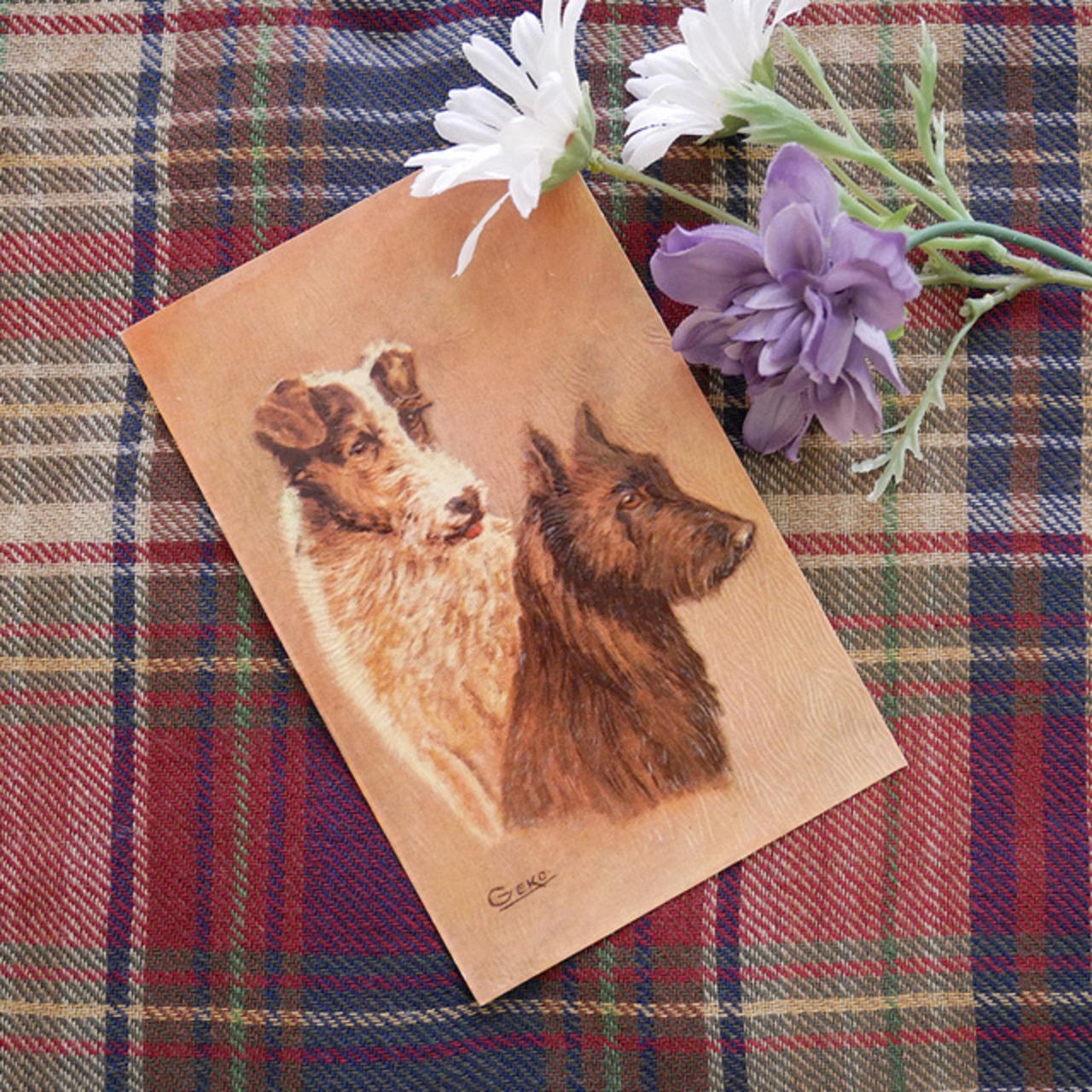 2種類のテリア犬が描かれたとても雰囲気のあるカードです