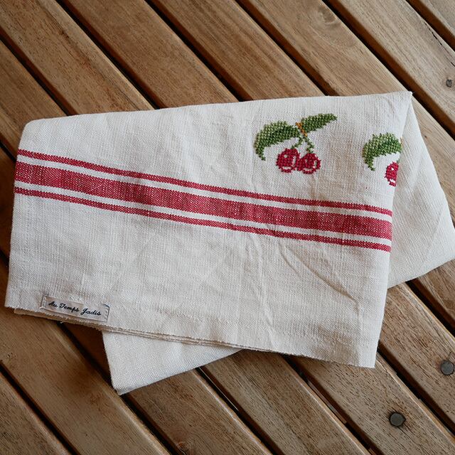 トーションはヴィンテージ生地です。織ふしや糸玉が少しあります
