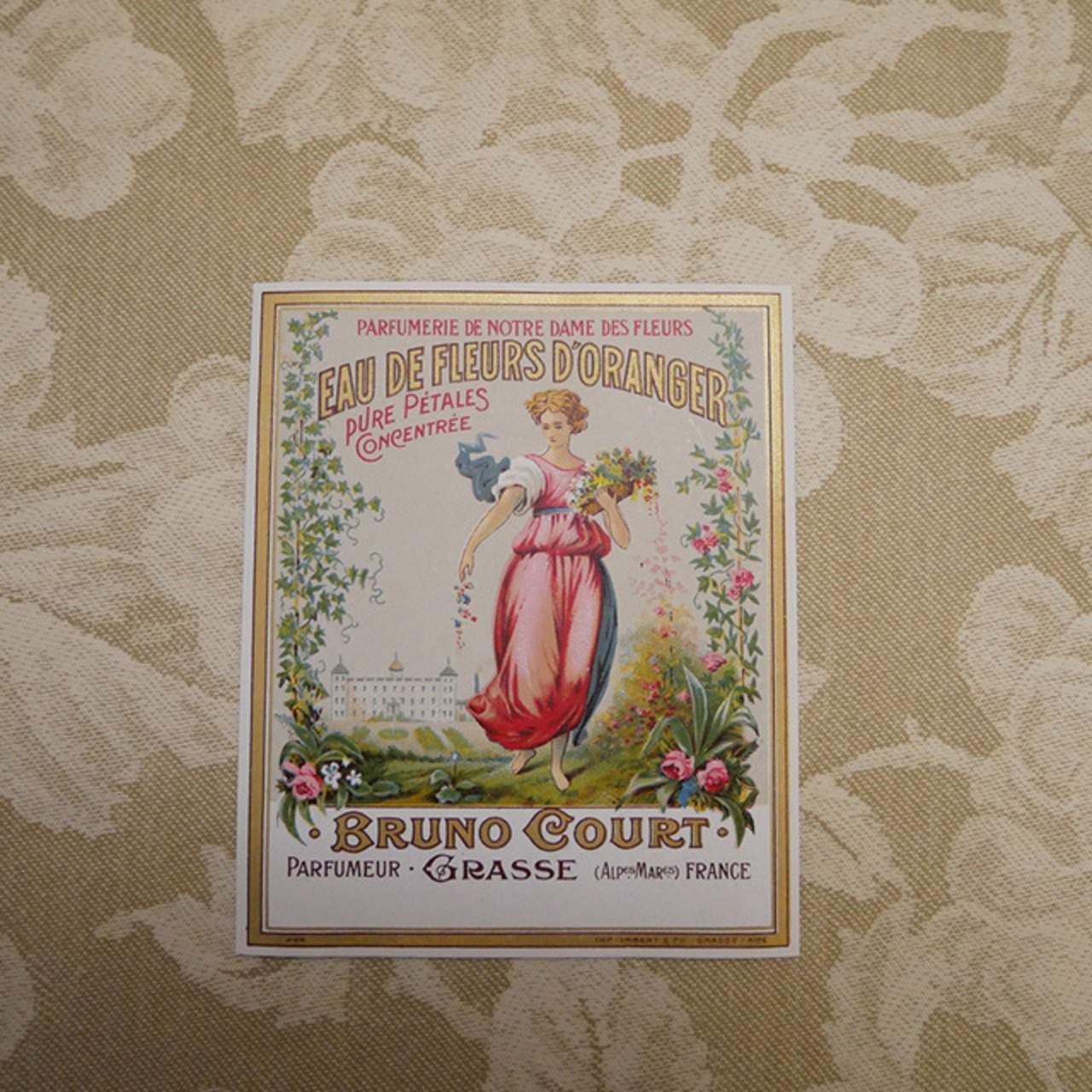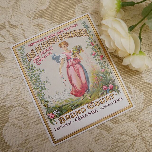 クラシックなデザインとお花を摘む女性のが素敵なラベルです